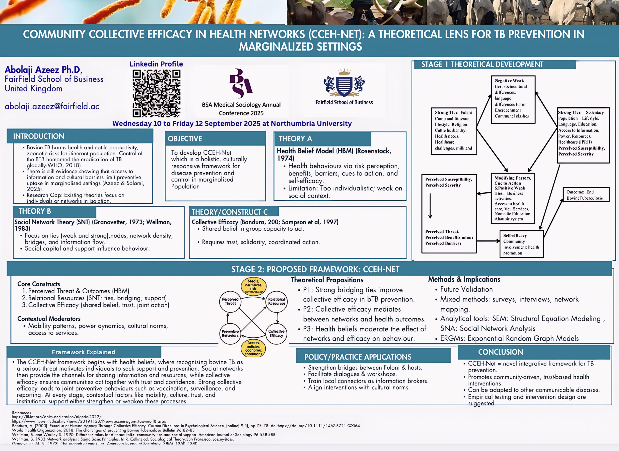 Dr Abolaji Azeez, a Trainee Course Coordinator and CODESRIA African Diaspora Visiting Scholar at FSB, shared his acclaimed Tuberculosis (TB) research at the British Sociological Association (BSA) Medical Sociology Annual Conference 2025 (10–12 September) at Northumbria University.